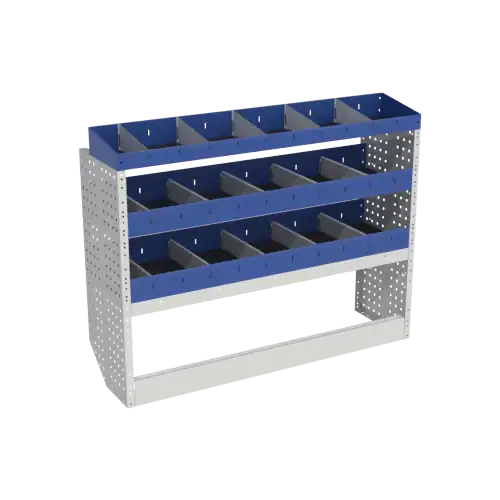 Basisuitrusting links voor Dacia Dokker L1 bestaande uit open wielkastafdekking, twee legborden met uitneembare verdelers en eindschap.