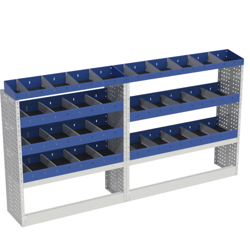 De linker basismodule voor de Renault Trafic L2 H1 bestelwagen is voorzien van twee open wielkastafdekkingen, vijf legplanken met schotjes en twee toplegborden. Deze slimme oplossing biedt voldoende opbergruimte om uw werkmateriaal te ordenen en te beschermen. De tussenschotjes zorgen voor een overzichtelijke scheiding van uw spullen, terwijl de open wielkastafdekkingen snelle en gemakkelijke toegang mogelijk maken. Deze basismodule is gemaakt van duurzame materialen en garandeert duurzaamheid en betrouwbaarheid. Maximaliseer de ruimte in uw Renault Trafic bestelwagen met deze veelzijdige en functionele opbergoplossing.